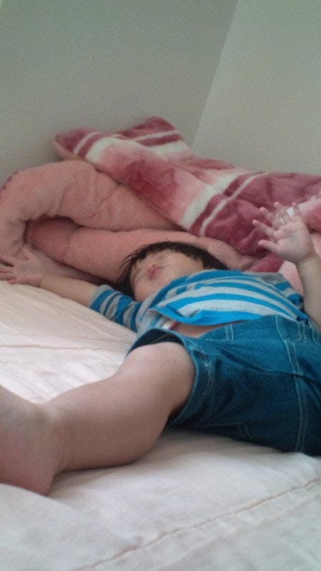←写真は2才弟くんのウソ寝ですが。