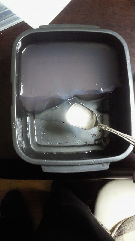 市販のゼリーの粉をタッパに入れて熱湯を注ぐだけ。