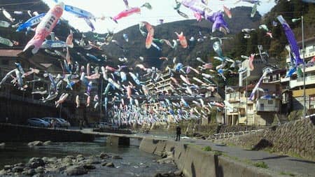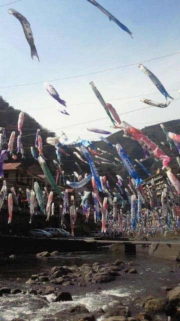 一つだけ「くまもん」って名前が入った鯉のぼりもありました。