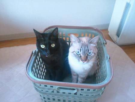 かごにつまったにゃんずの写メで朝から和みました(*・ω・*)