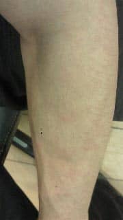 じんましん ポスト 2014年6月18日 なんかこのネタ、以前に一度書いたような気もするんですが、またまたなってしまいました…じんましんに。でも、今回のじんましんはかなりしぶとく、1週間前から出はじめたのですが、ここのところ毎日出るんです(ー_ー)!!しかも、夜になると特にひどくなる傾向にあり、2日連続で4時ぐらいまで寝付けないんです…。写真はかなりひいてるときの写真ですが、これは何かの前触れですかね? 担当:加藤