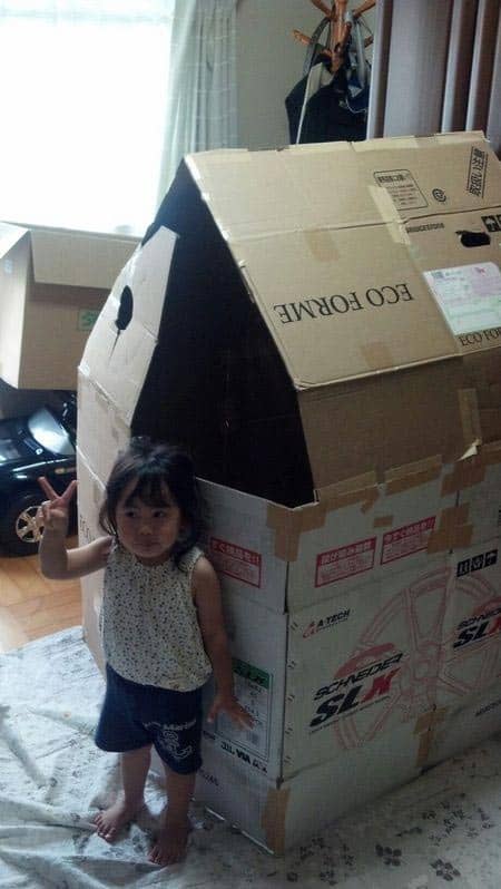 嬉しくて、捨てるダンボールを持って帰り、さっそくお家作り!