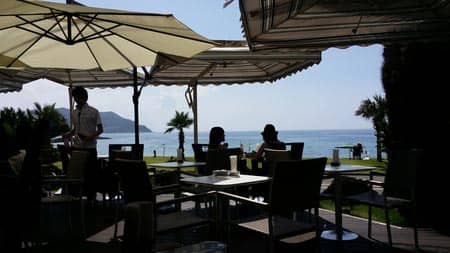 帰りは海沿いのカフェで休憩して帰ります