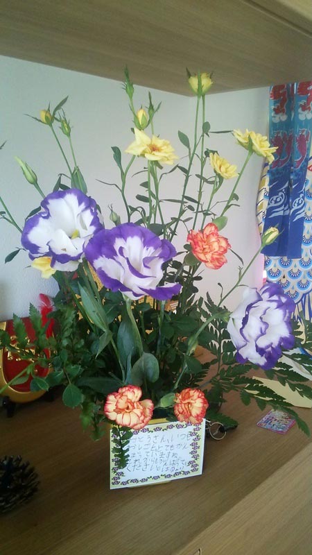 玄関の、入って直ぐ目に付くところに、メッセージ付きで飾っていたにもかかわらず見過ごすのは矢張り私の旦那様(笑)