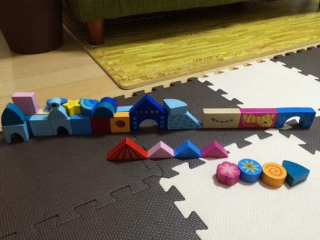 家に帰ると娘が積み木でマジメな顔して黙々と何かを作っています。