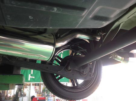 今月初めに、インチアップして頂いた、ワゴンRのお客様が、「マフラーは?」