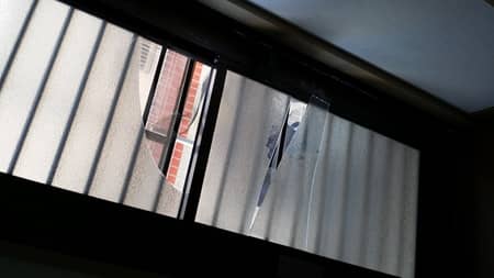 見に行くと裏の勝手口のガラスが割られてました