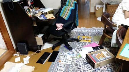 テレビでよく見る空き巣の散らかし具合でした