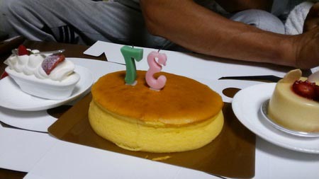 ローソクは、前回おじーちゃんの誕生日で使った73歳のローソクが