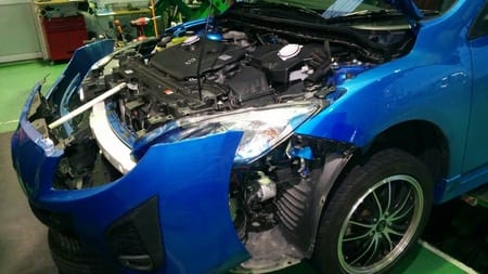その為には、バンパーを外してから、ライトユニットを外す手順です。