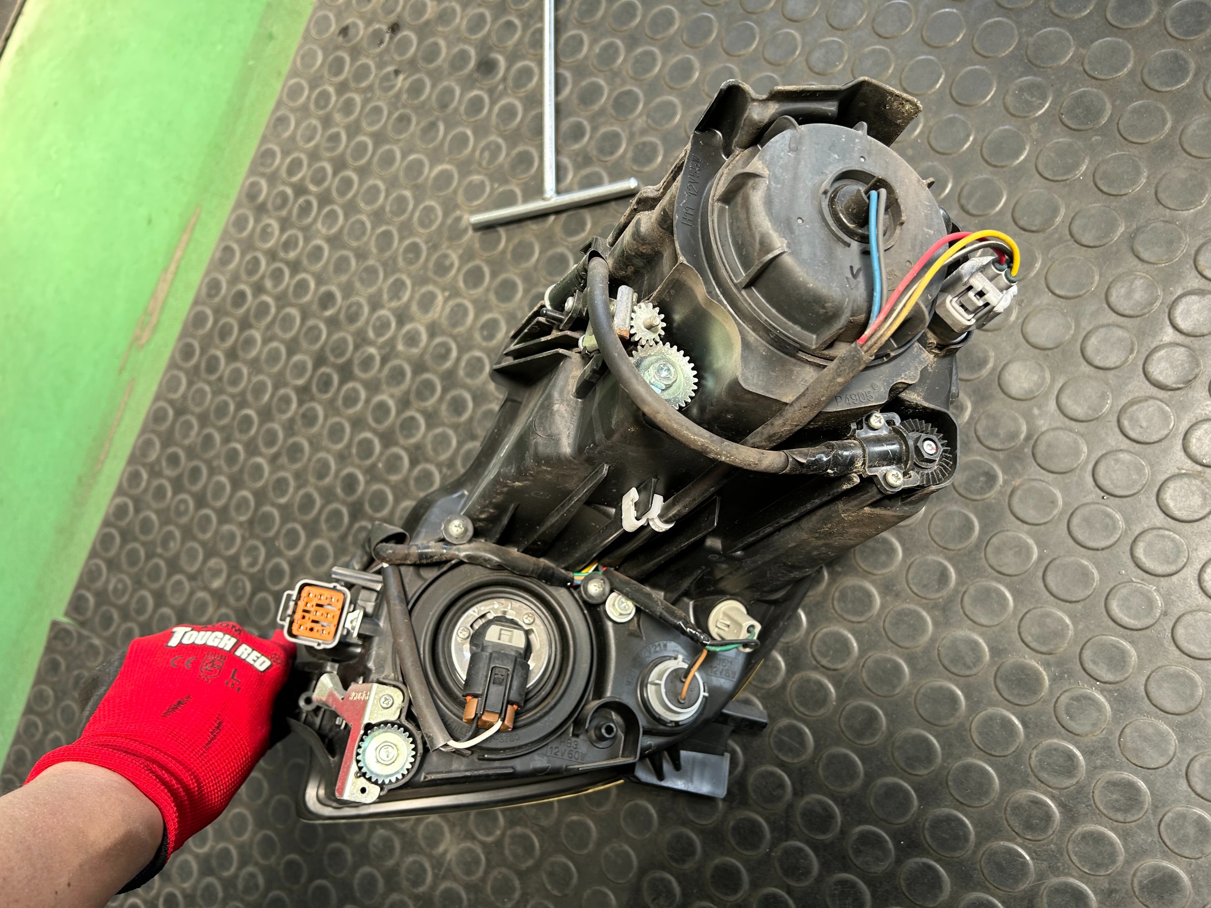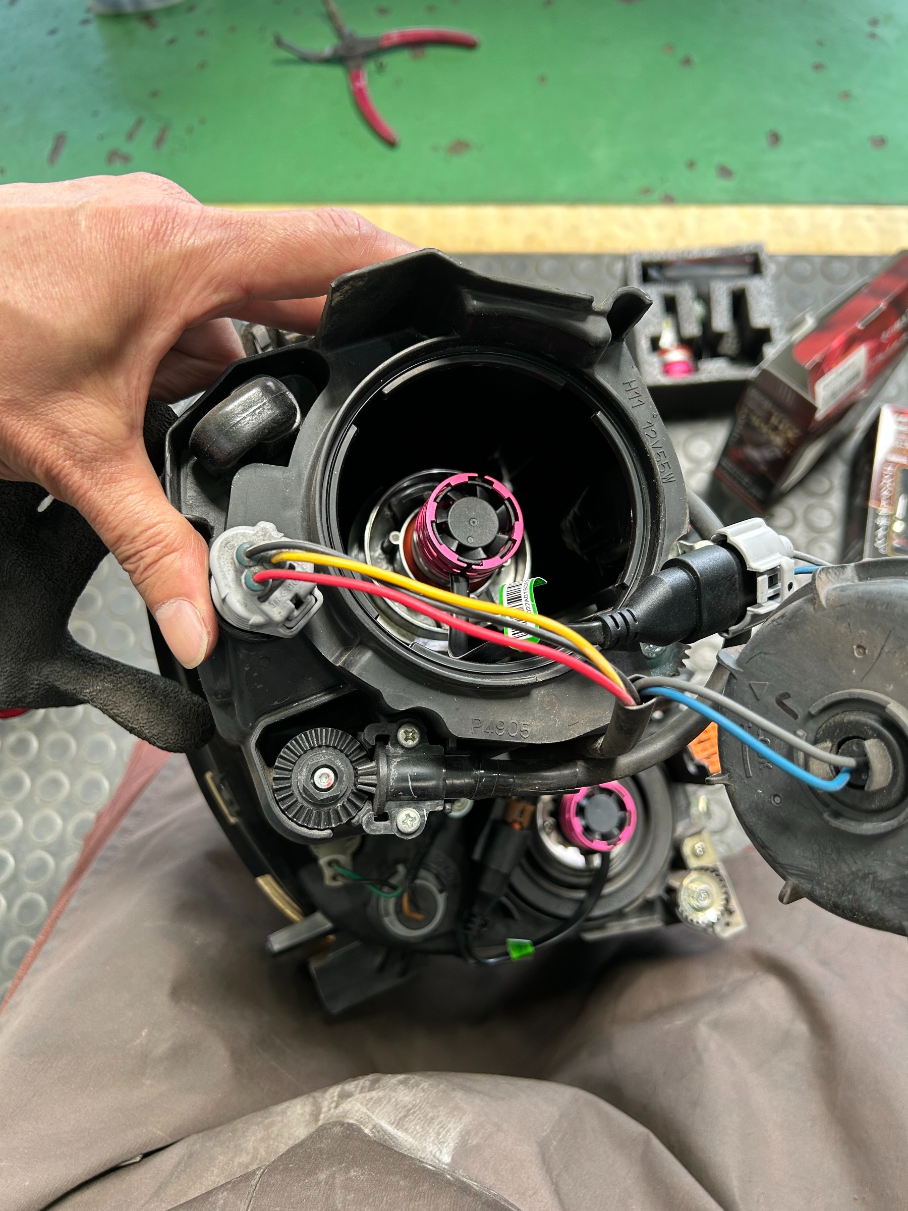 ハイビームとスモールランプを交換したのち、ロービームの交換ですが、アイの場合プラ製の蓋が付く為
