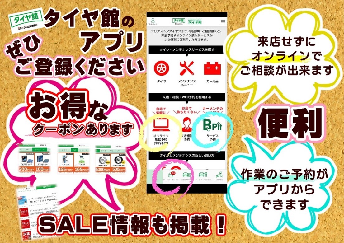 【タイヤ館アプリ】 ダウンロードしてみませんか
