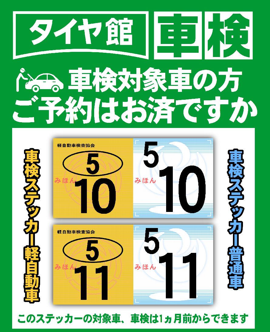 タイヤ館は車検もやってます。