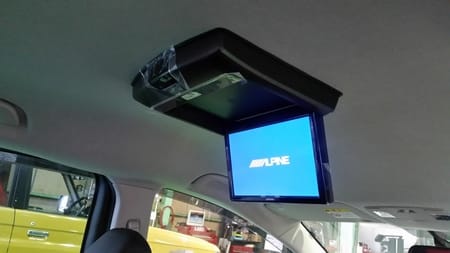 今日はマツダプレマシーにアルパインのフリップダウンモニターを