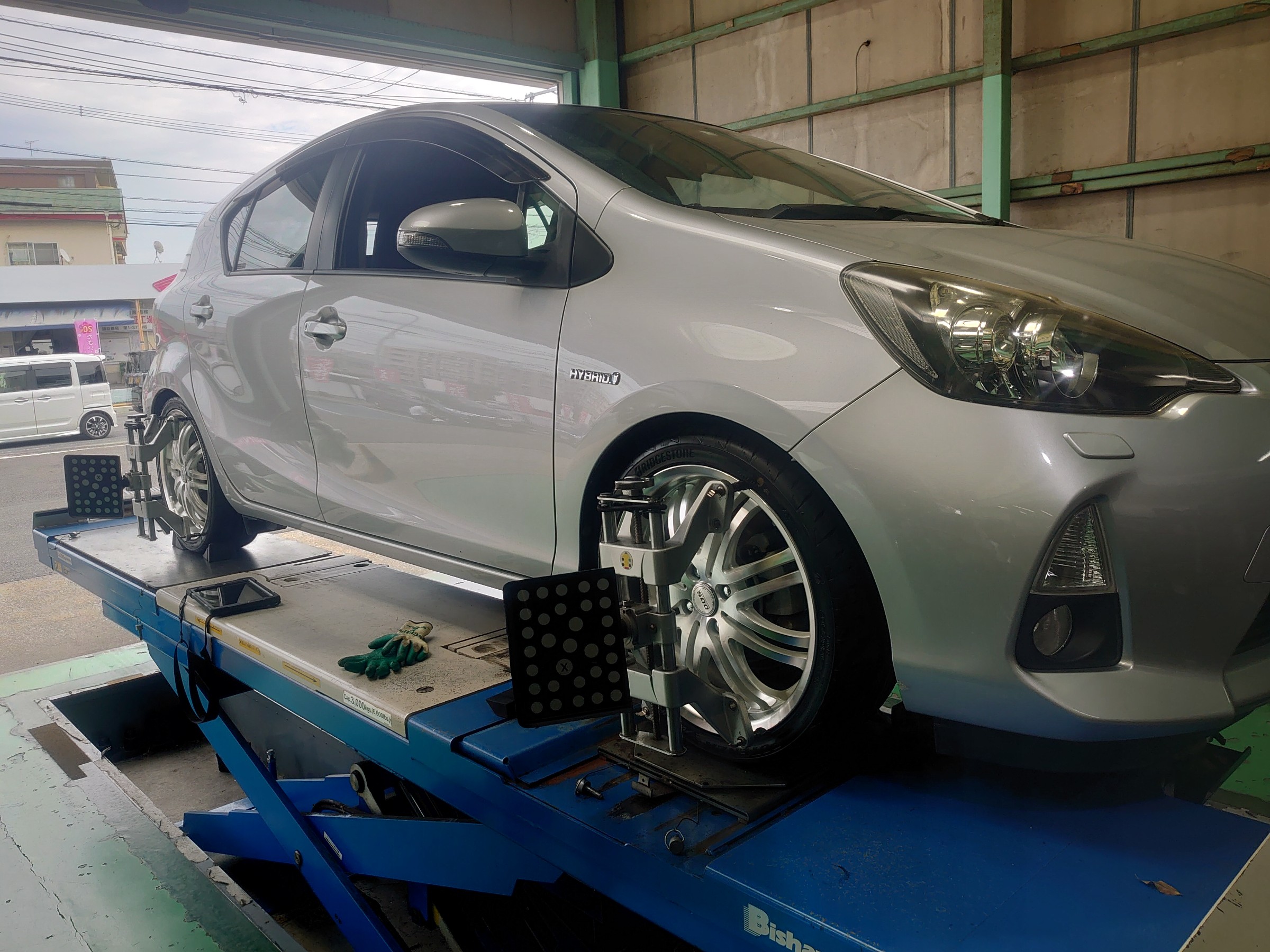 今回はトヨタのアクアのタイヤ交換とアライメント調整です。