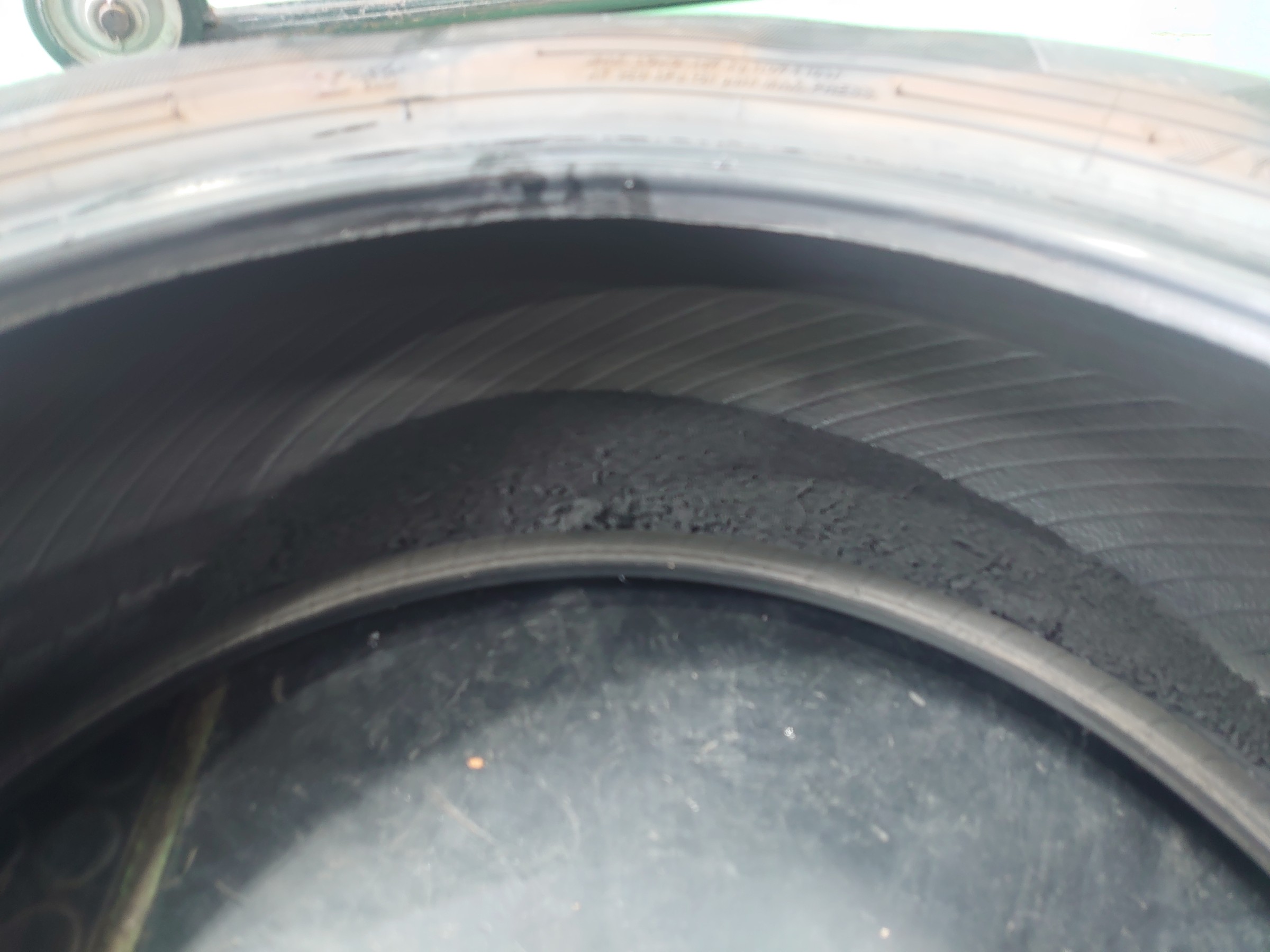 タイヤをバラしてみるとタイヤのゴムかすが大量に出ていました。