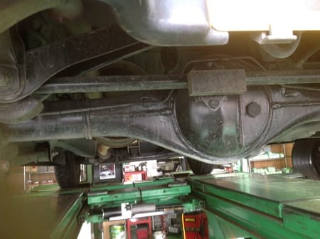 リフトアップ時に下回りを見ると、『シャシーブラック』で