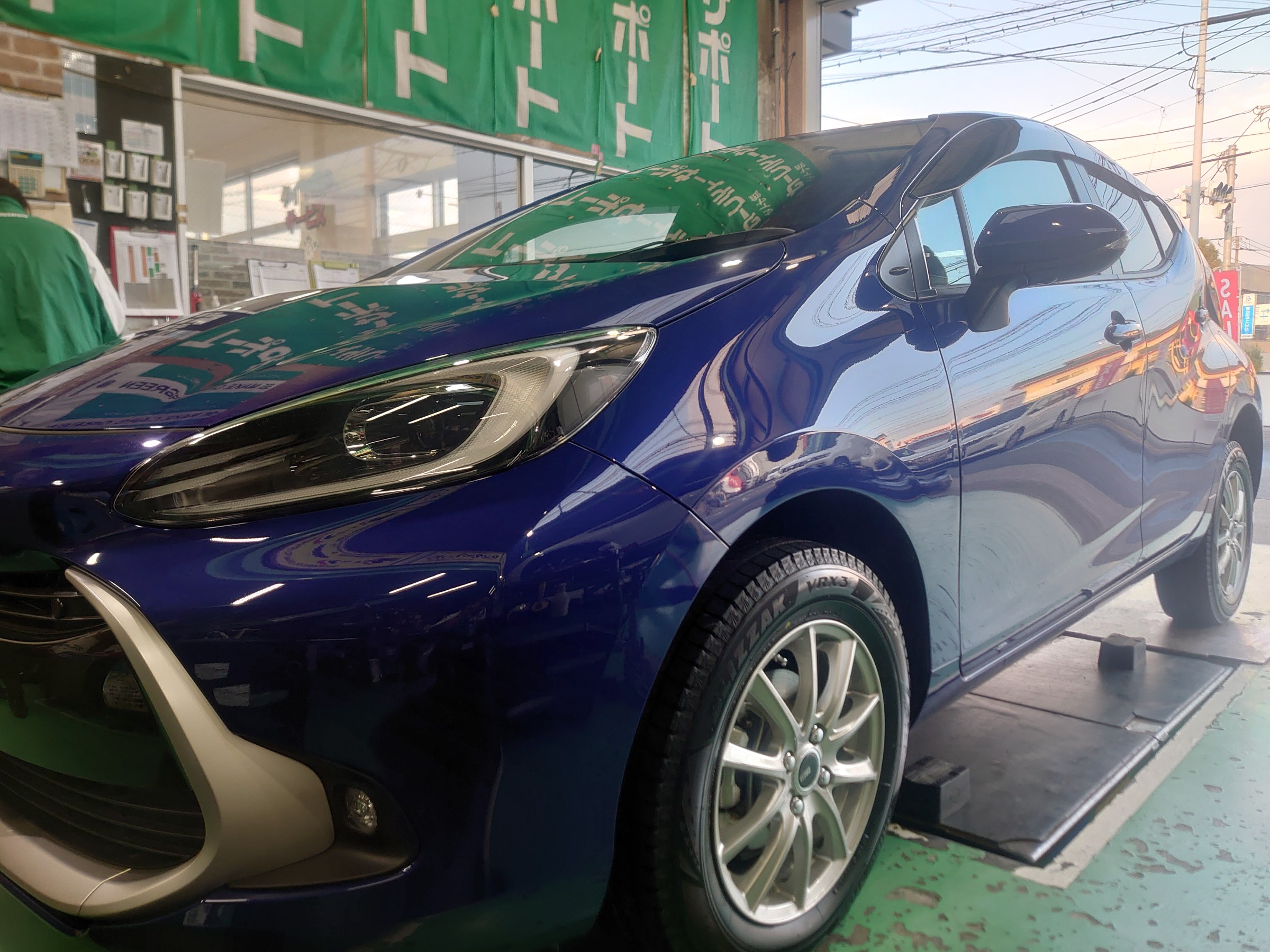 今回はトヨタのアクアにスタッドレスタイヤを付け替えです。