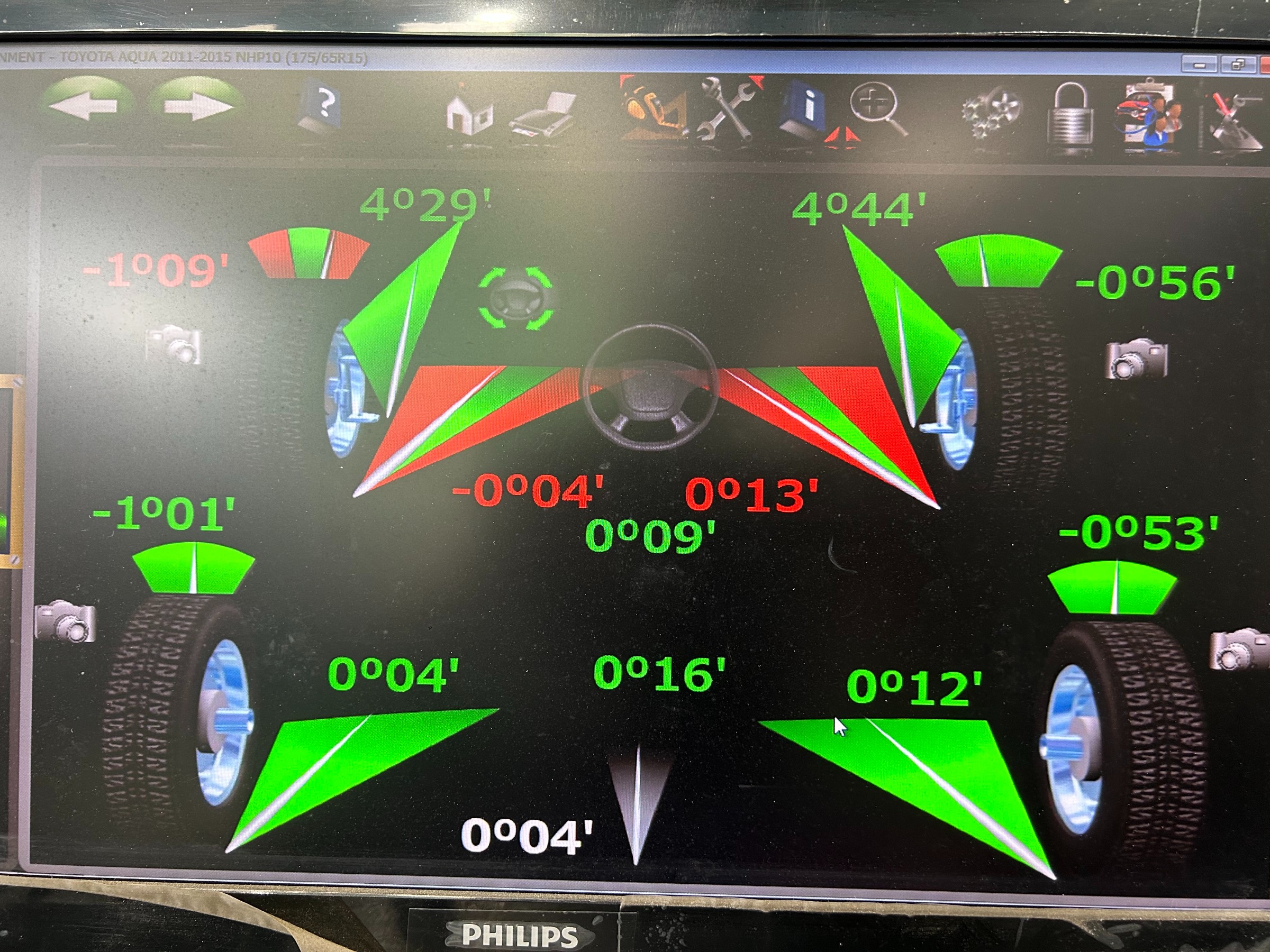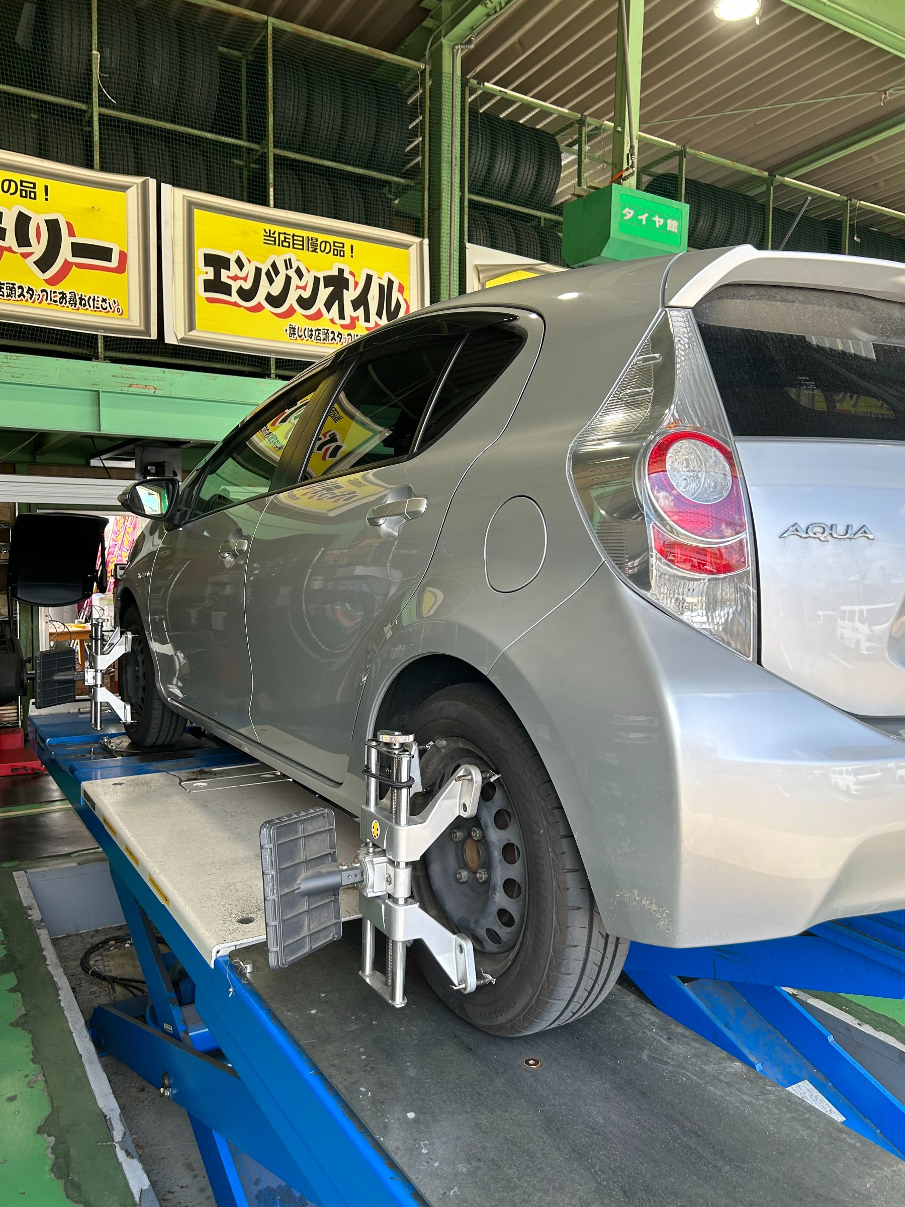 今回は、トヨタアクアのお客様の、アライメント長持ちプランからの、再調整を実施しました。