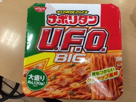 こういうのが好きだ ポスト 2015年10月11日 皆様、こんにちは! 小野です。先日、立ち寄ったいつものコンビニで新種発見!!『日清焼そば ナポリタンU.F.O. BIG』、、、昔なつかしいケチャップ風味と書かれています。。。焼きそばなのか?・・・スパッゲティなのか?愚問ですね。そんな事もうどうでもいいってぐらい美味かったです!!!!!U(うまい)。F(太い)。O(大きい)さすがっ!! コンセプト通り!!!!! 担当:小野