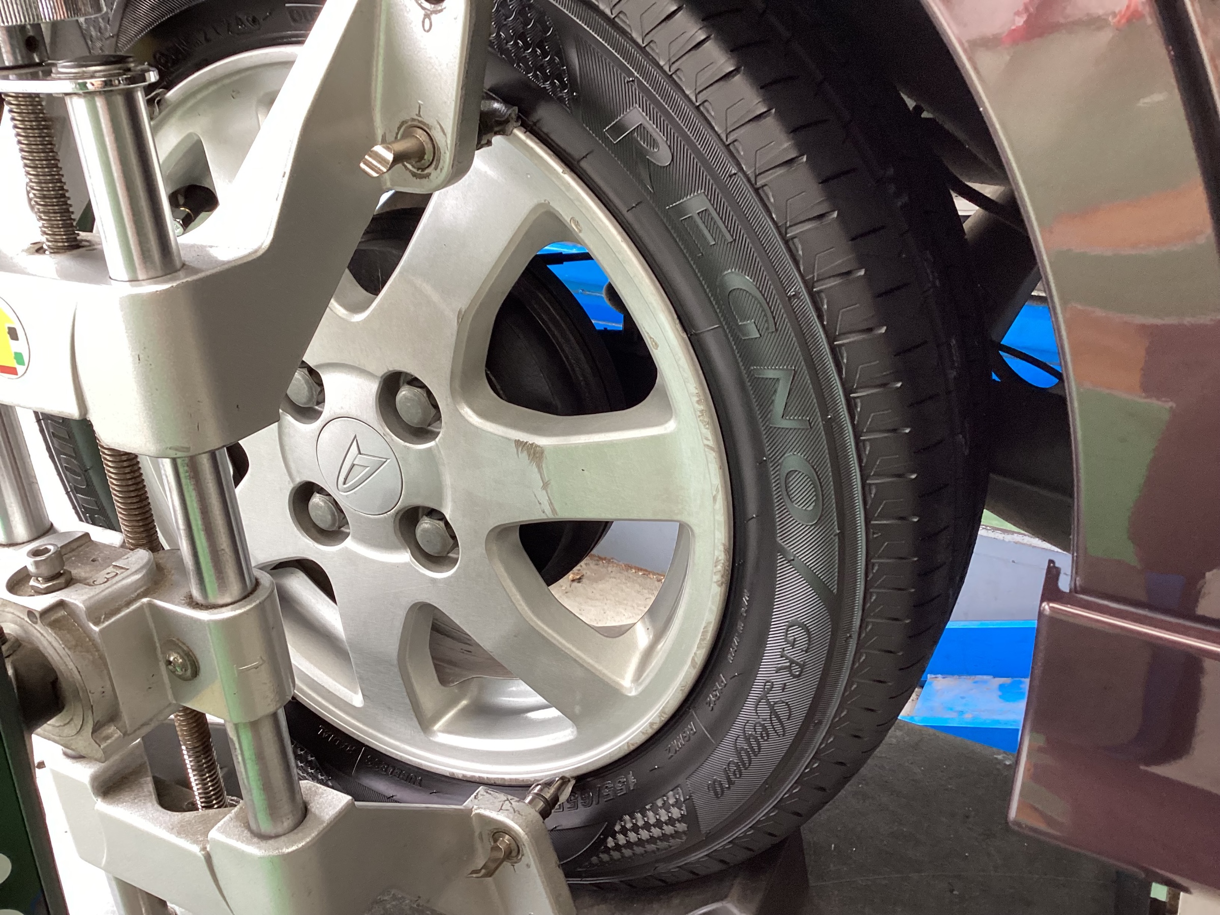 タイヤ交換とアライメント調整を実施させて頂きました。
