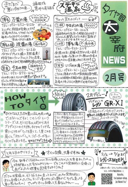 店頭にて掲示しております今月のタイヤ館太宰府新聞でございます♪