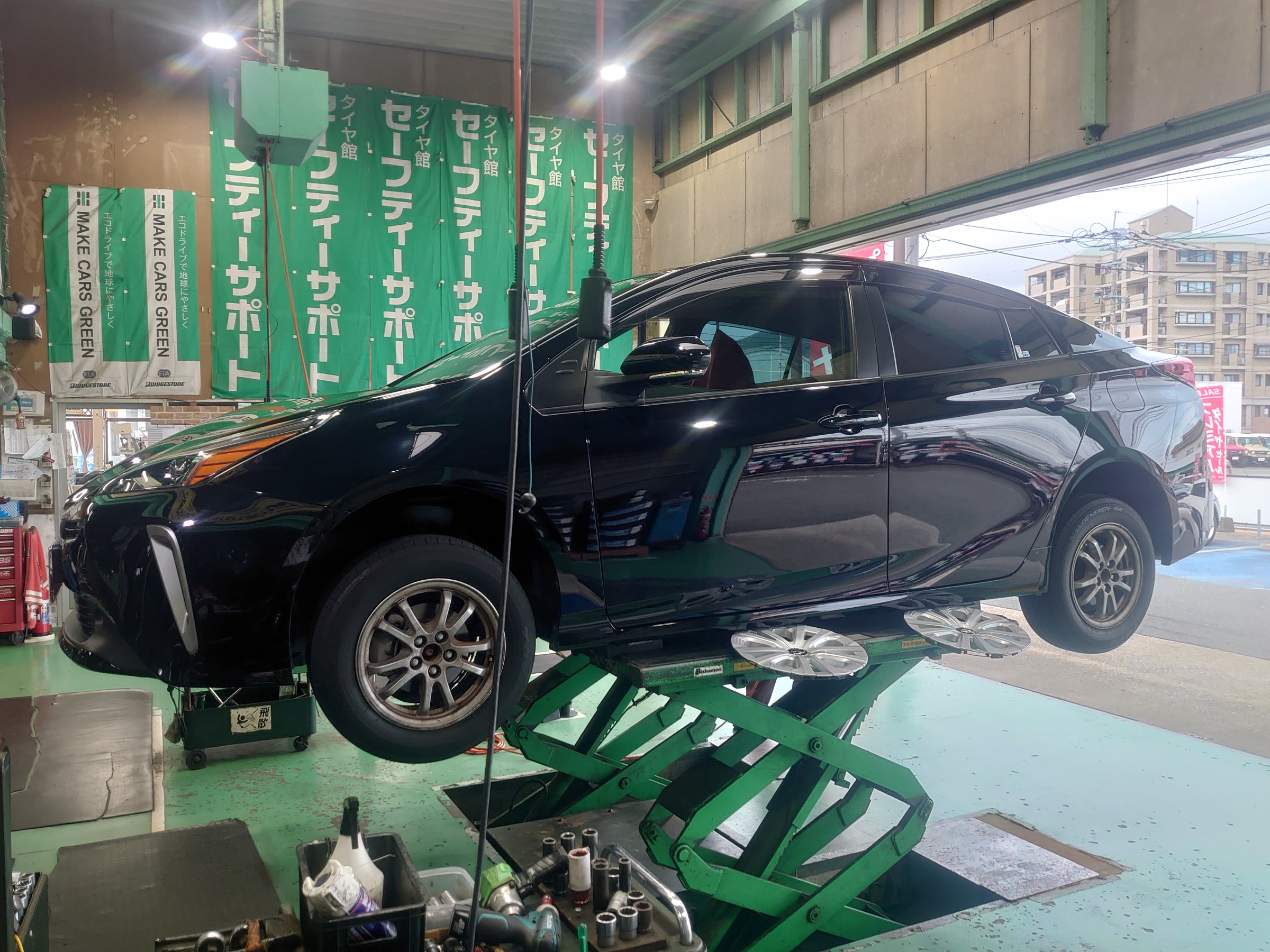 今回はトヨタのプリウスのタイヤ交換です。
