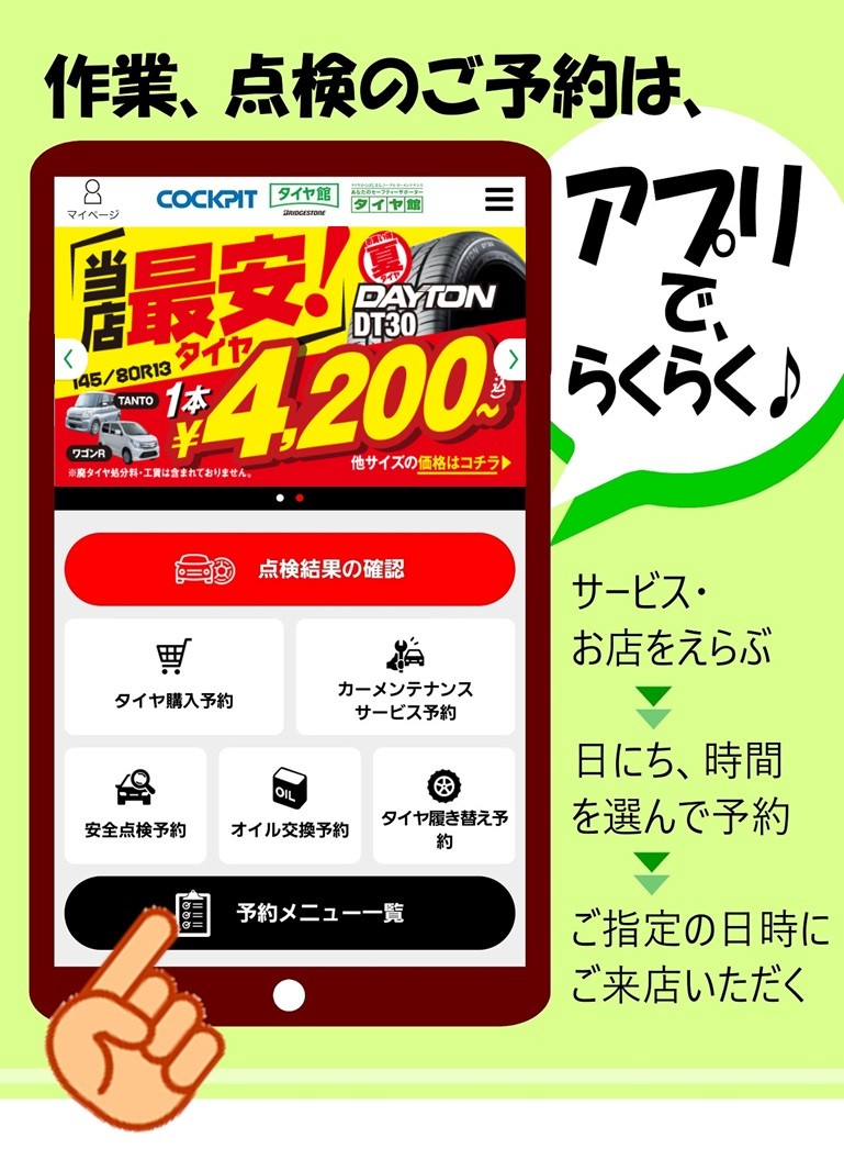 タイヤ館アプリをお持ちの方は、