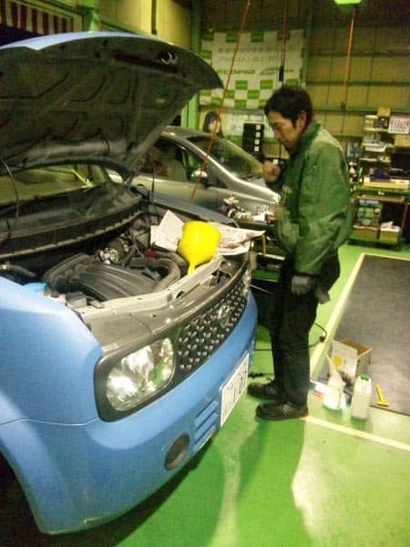 小野スタッフも、寒さと格闘しながら、お客様のクーラント交換をしています(+o+)