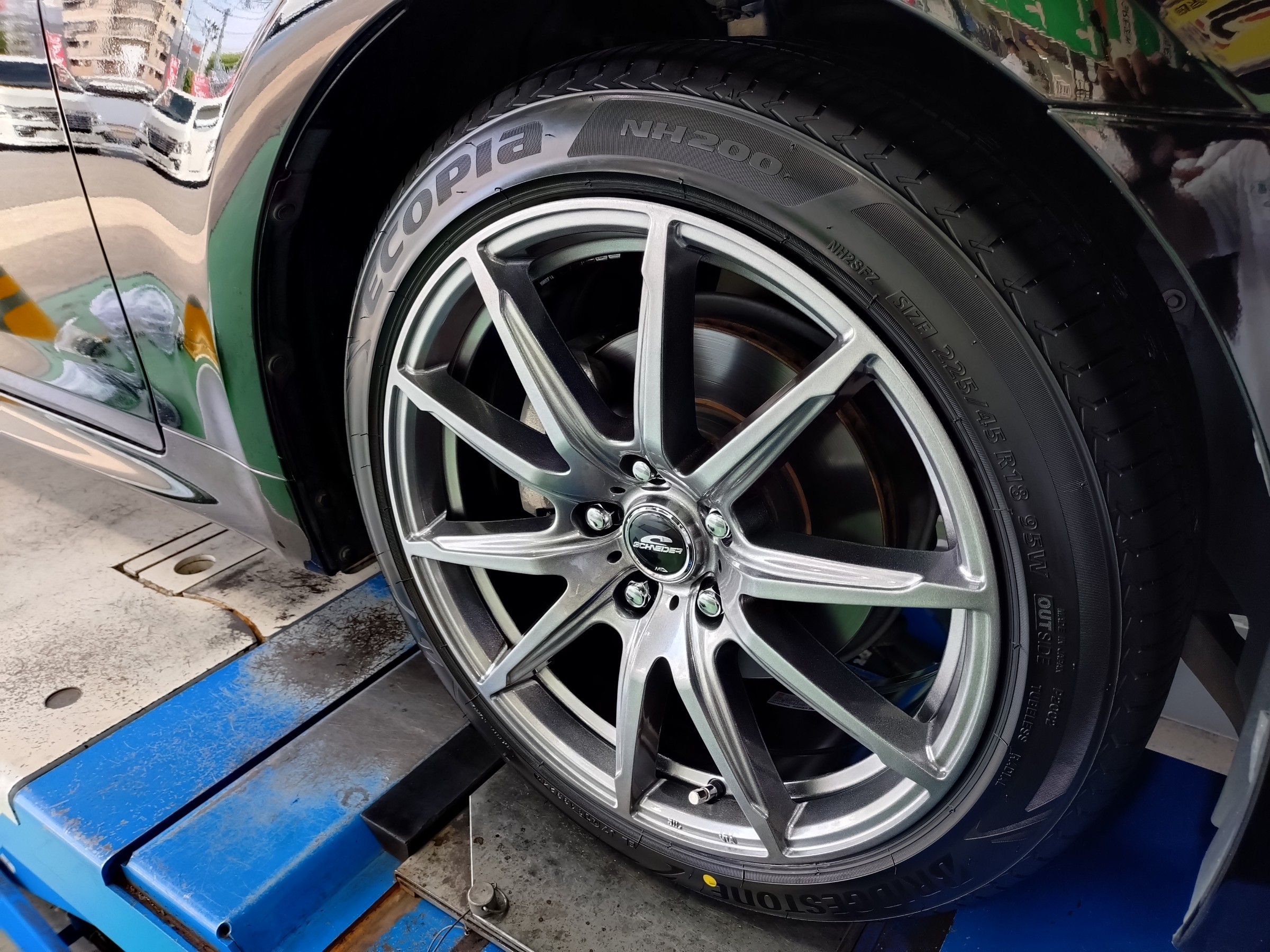 今回はトヨタのクラウンのタイヤ交換とアライメント調整です。