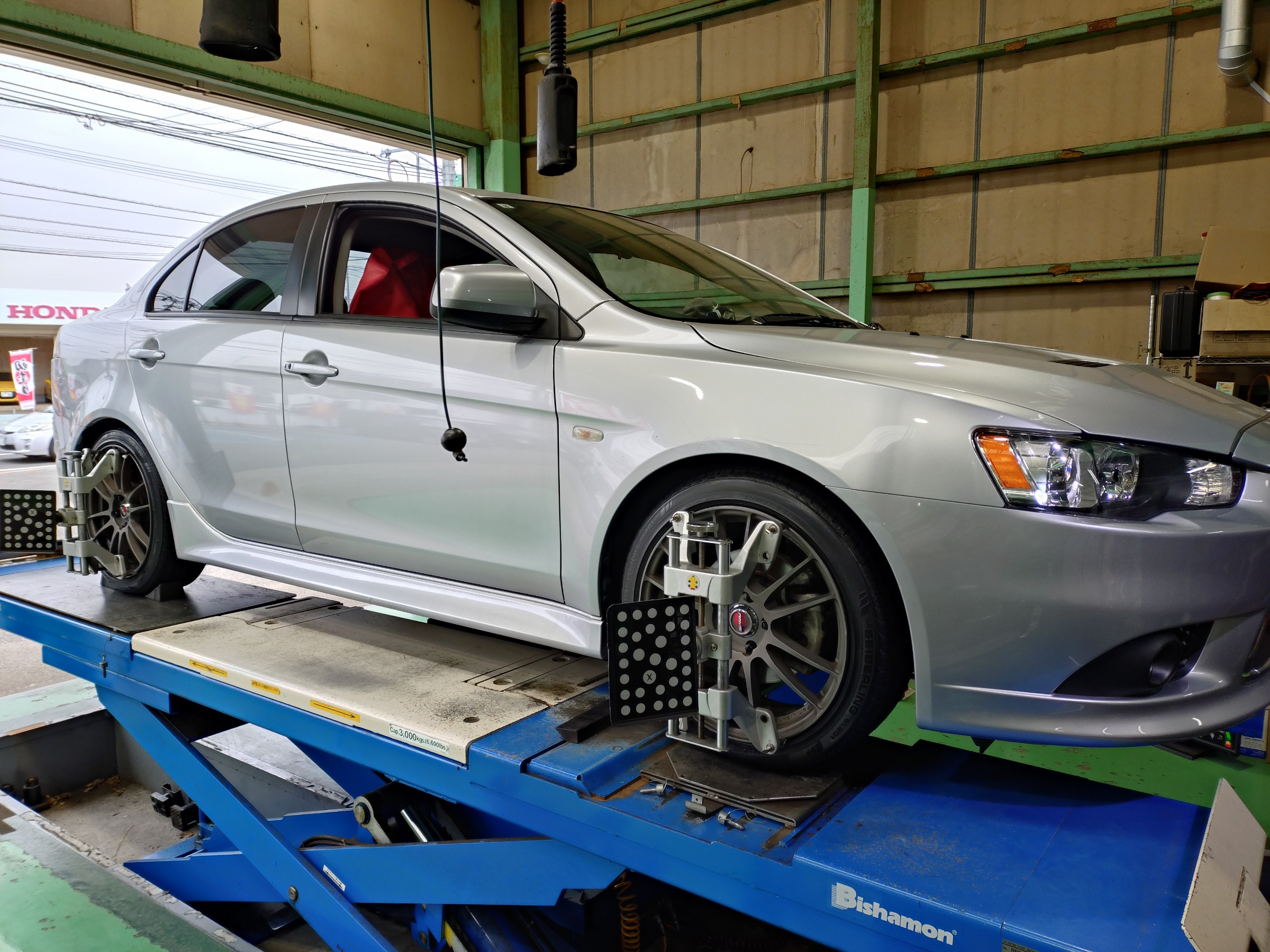 今回はミツビシのギャランのタイヤ交換とアライメント調整です。