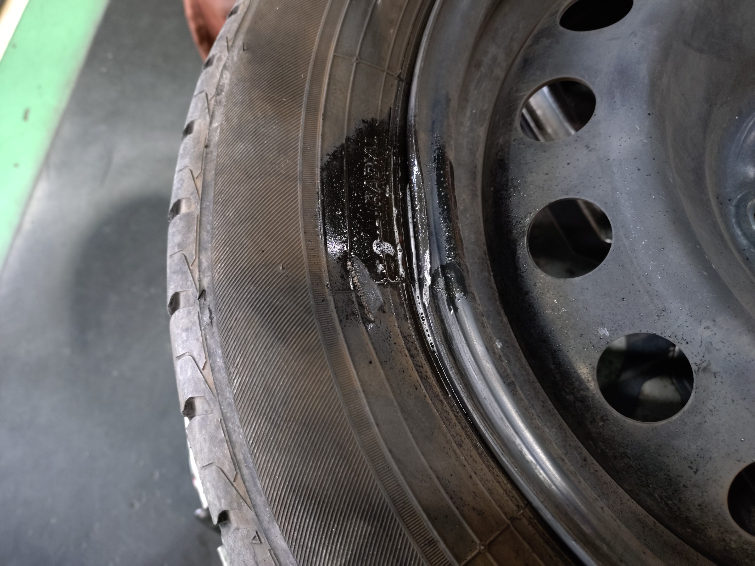 ホイールが変形していてじわりと空気が漏れていました。