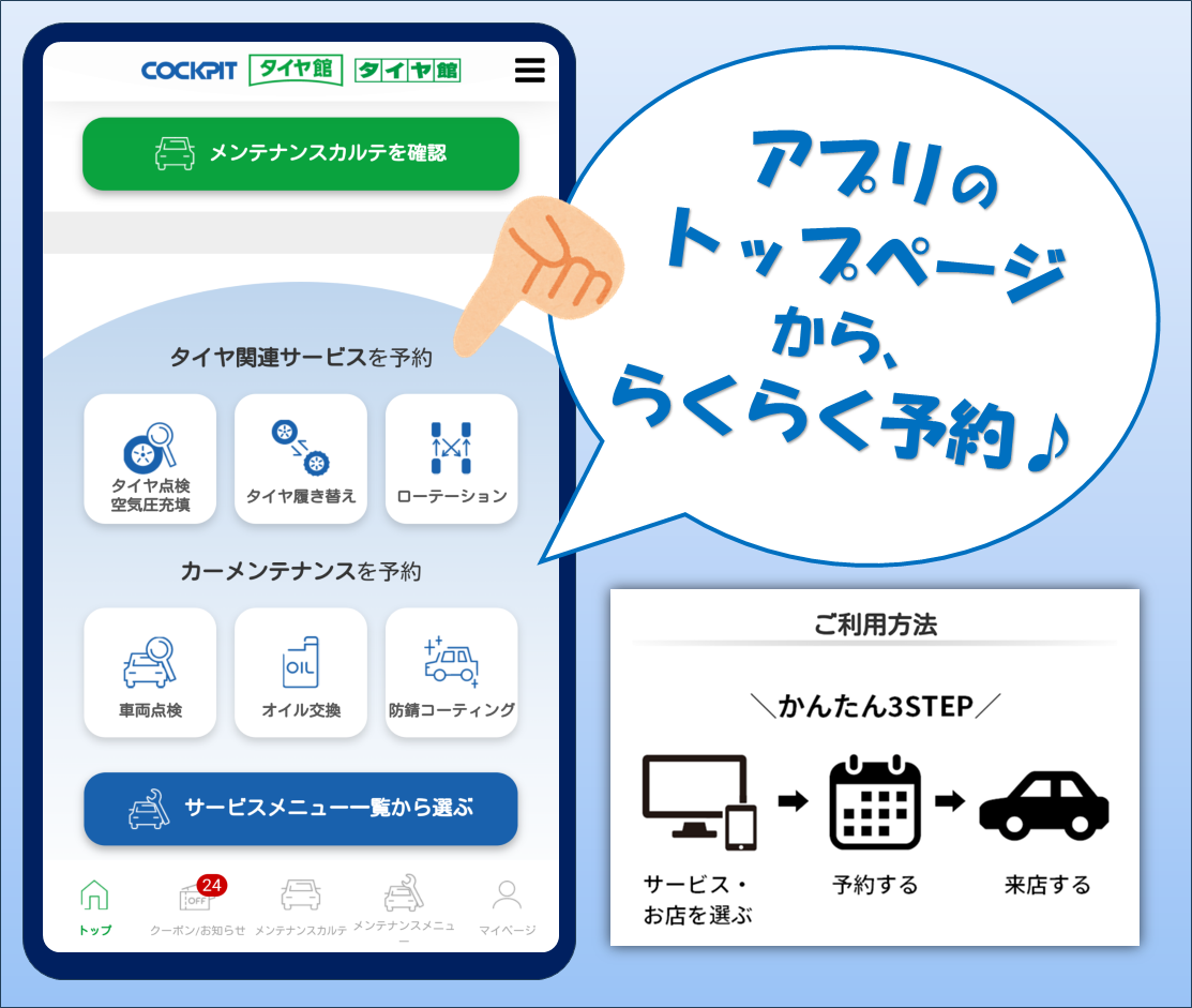 タイヤ館アプリをお持ちの方は、