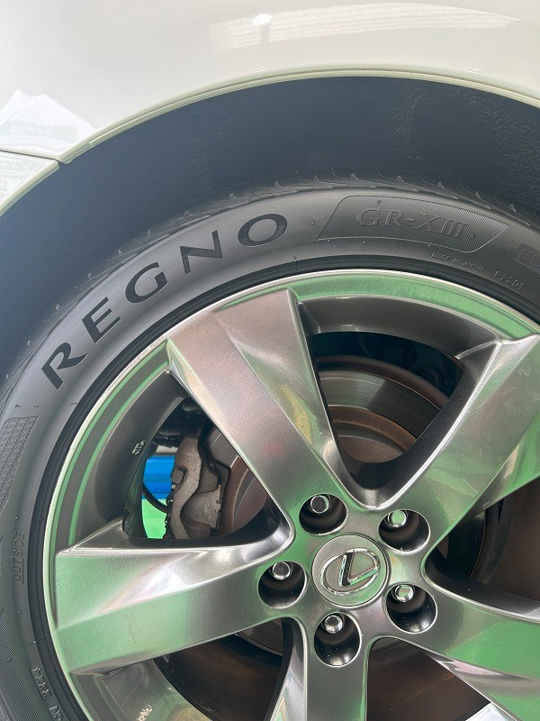 今回は、常連のレクサスのお客様に、「REGNO GR-XⅢ」でのタイヤ交換と、以前アライメントの