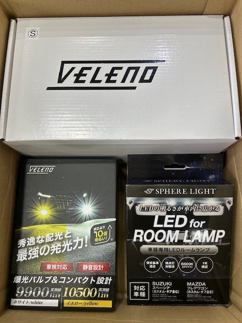 レンズユニットと本体は「VELENO」で、LEDルームランプは「スフィアライト」製となりました