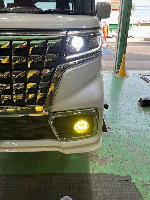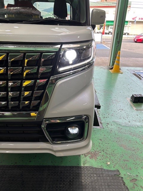 今回は、スズキスペーシアカスタムのお客様が純正LEDフォグランプが暗いので、交換出来ますか?