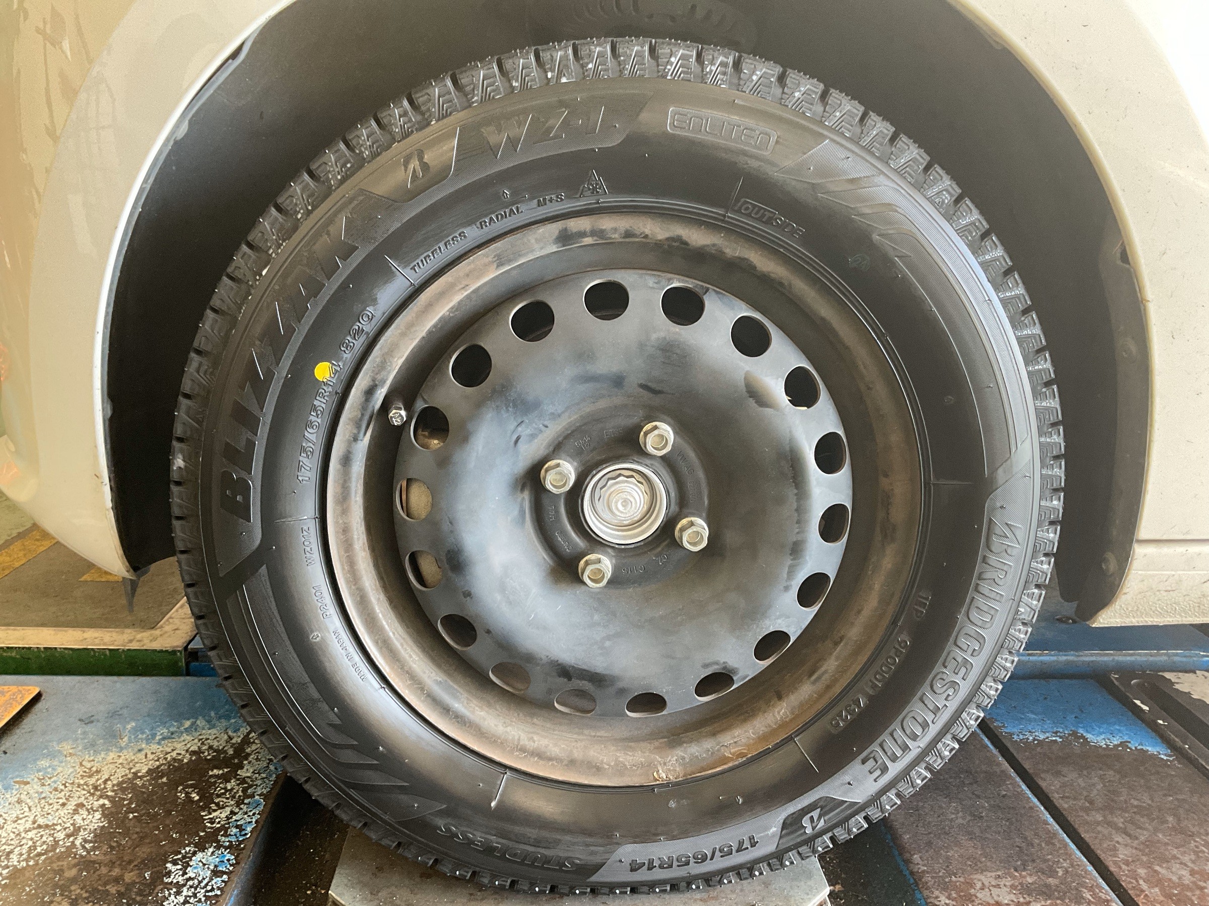 【フォルクスワーゲン up!(DBA-AACHY型)】スタッドレスタイヤ取り付け作業(BLIZZAK WZ-1)