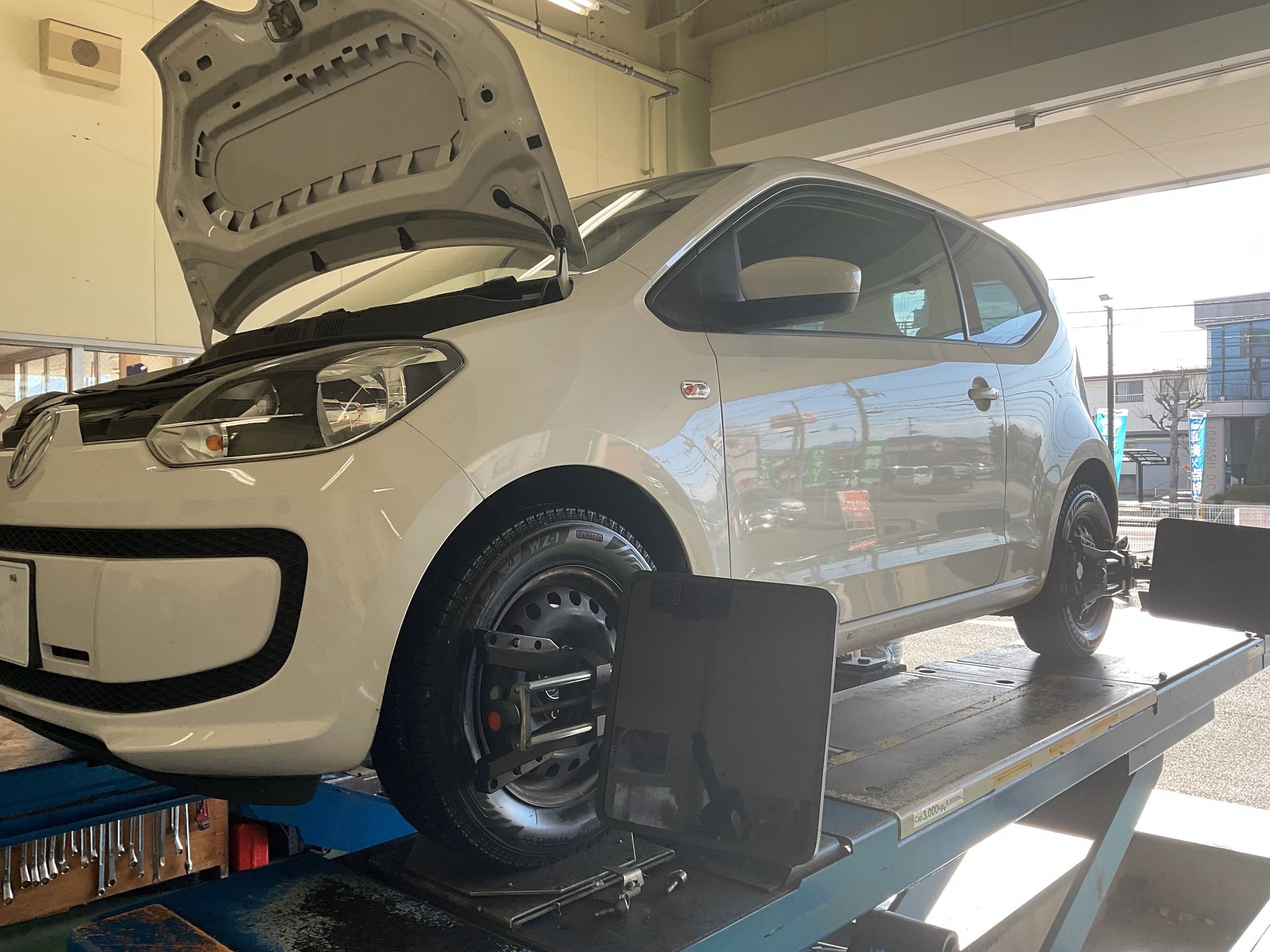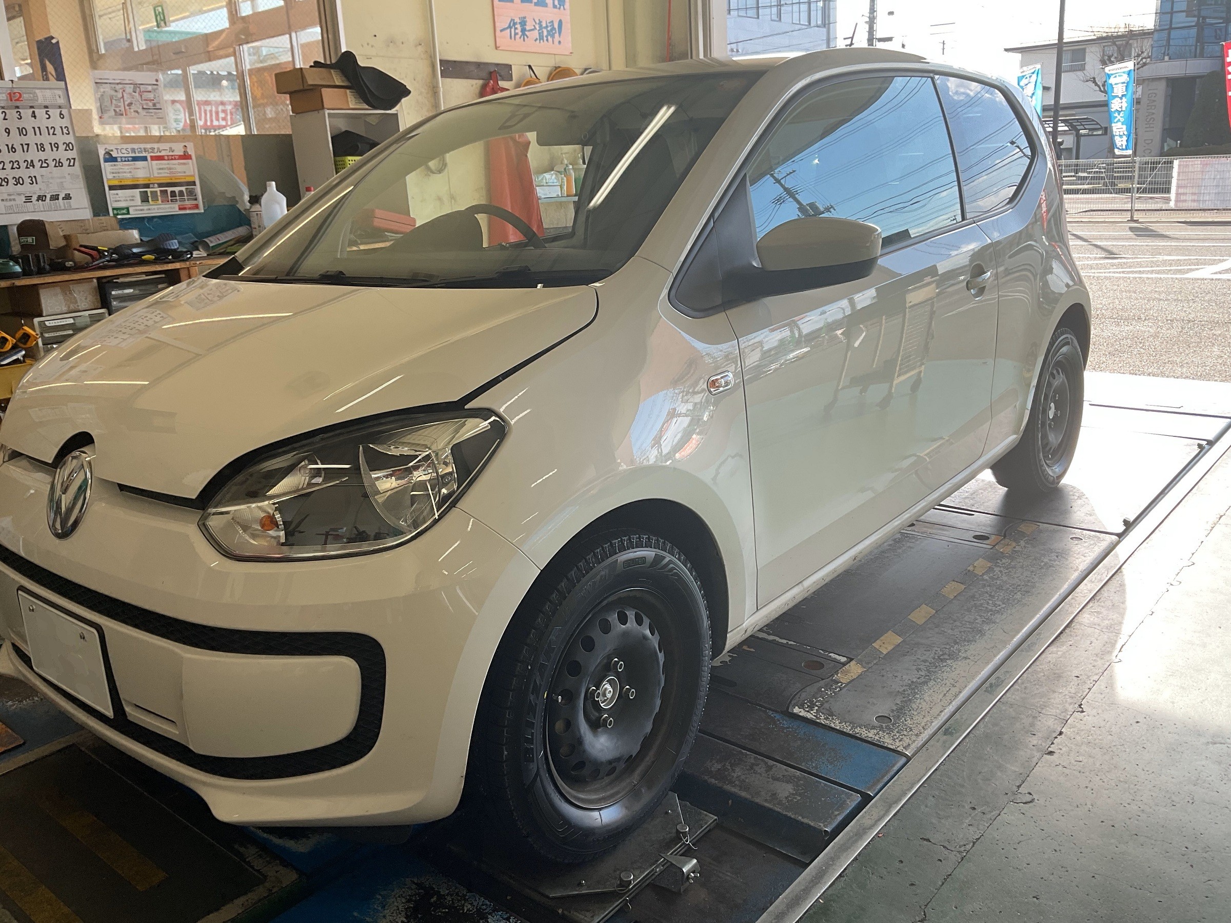 今回は、フォルクスワーゲン up!(DBA-AACHY型)のスタッドレスタイヤ取り付けを実施!!