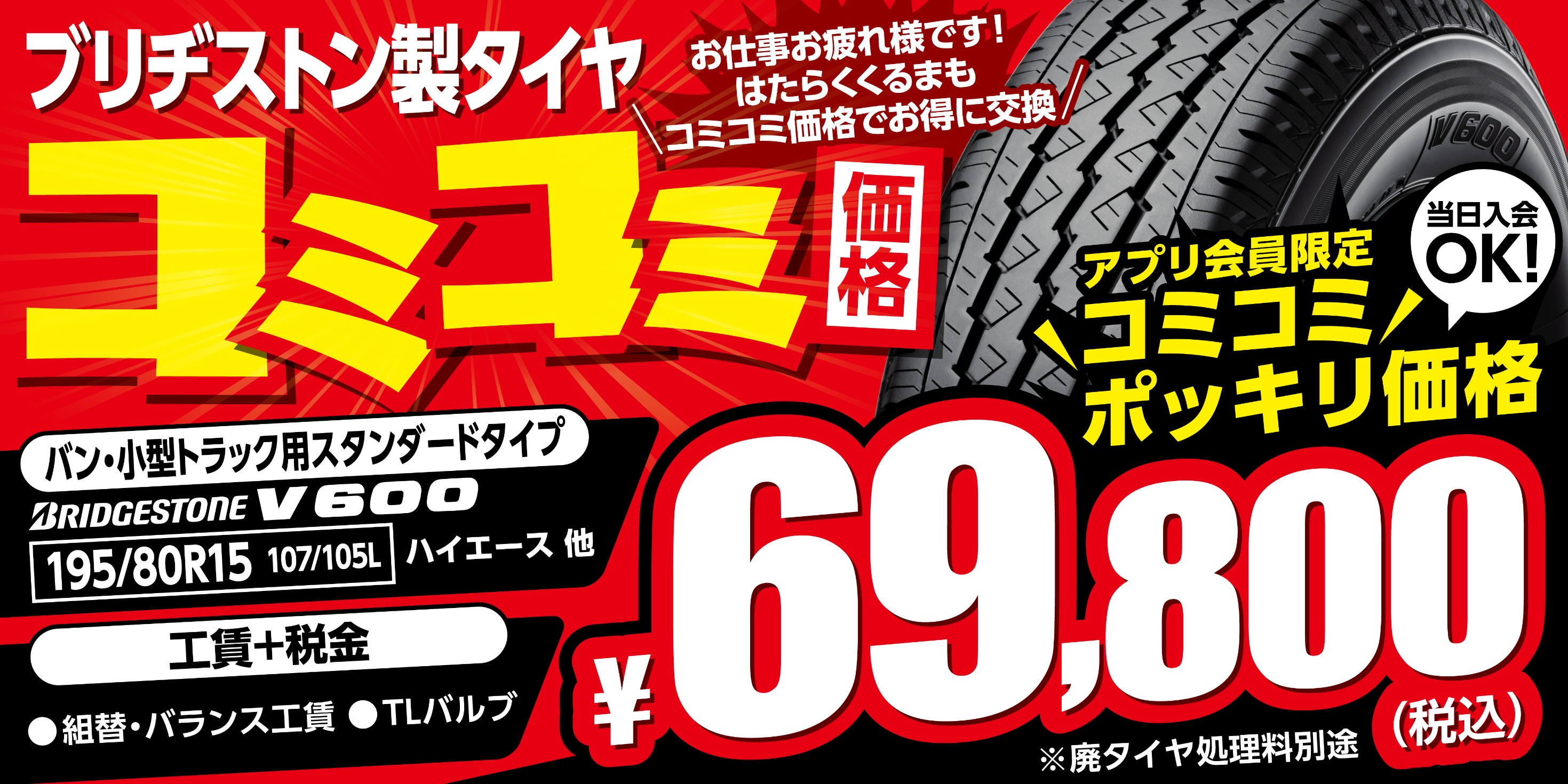 【平日限定企画】働く車を全力応援!軽トラ、軽バン、ハイエース用のタイヤがコミコミ価格でお得!
