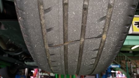 タイヤの地面との設置面を横に約10センチほどの切れた後がっ!!!