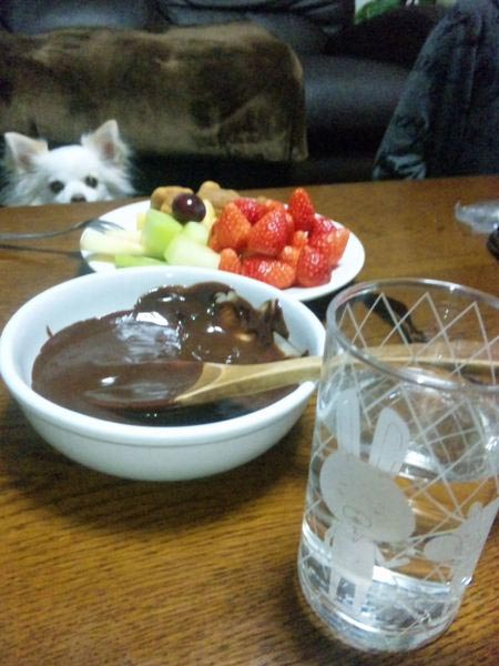 家に帰って、いざ始まっても、最初はフルーツだけを食べていましたが、いざチョコを付けて食べてみると、う~~~~ん結構美味い~~~(●^o^●)