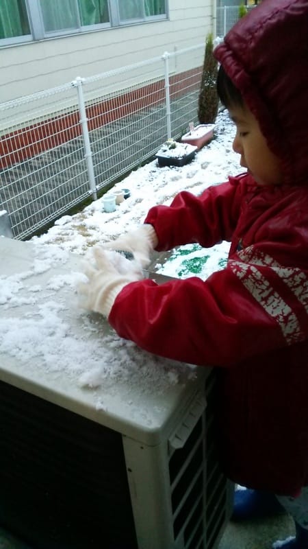 そんなに大量の雪ではなかったですが、子供たちは朝からテンションMAX大はしゃぎで大変でした。