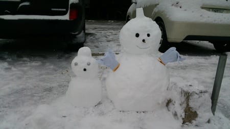 写真の雪だるまは、作業待ちのお客様が作ってくださいました☆