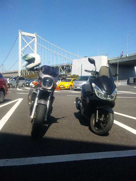 そして次の休憩場所の、めかりSAに着くと、さっきのハーレーの方々が....