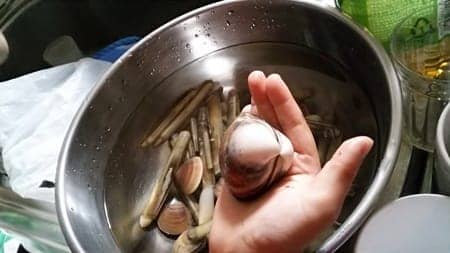 細長い貝で、捕獲の仕方がまた面白い(@_@)!