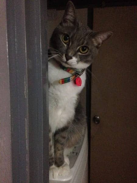 風呂場までついてきては、わたしをじっと見つめています・・・