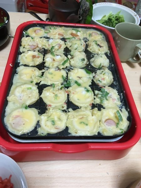 我が家では、たこの他にもウィンナーやチーズを入れて作ります(●^o^●)