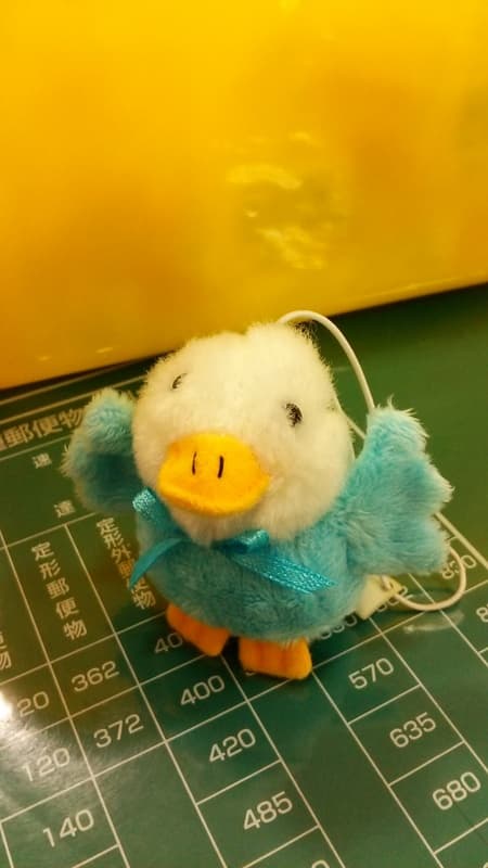 お客様のカギにくっついていたこのアヒルちゃんの話をしてまして。