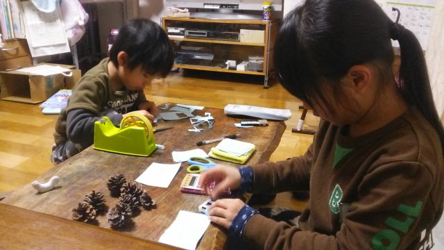 子供らは自分たちで各々好きなことをやってました。(主に工作。)