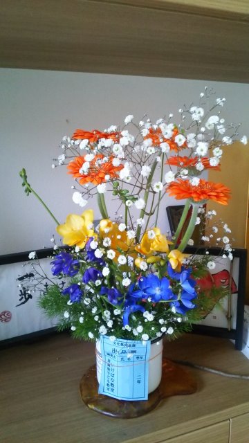 写真は、今年度最後の活け花です。